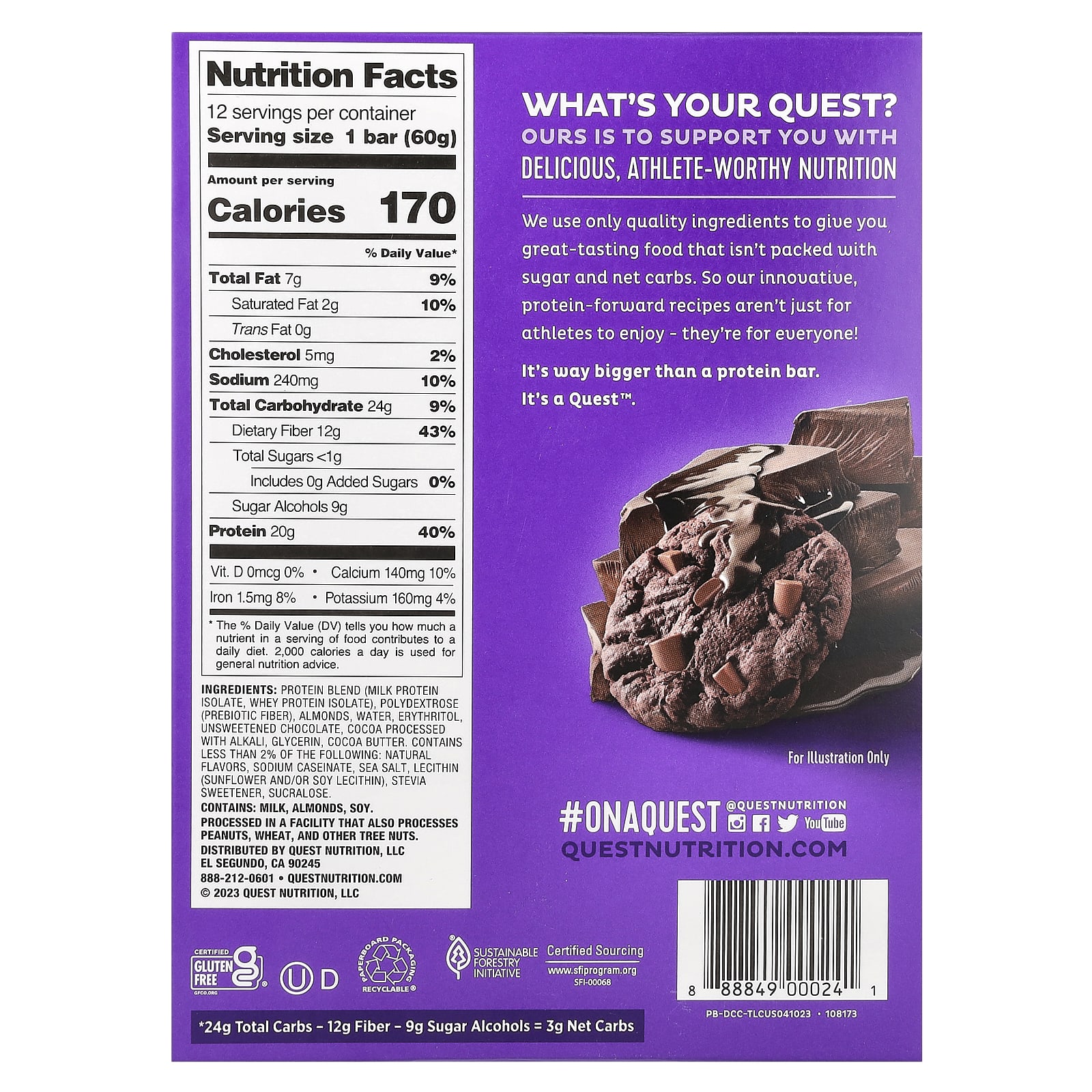 Quest Nutrition Barra de Proteínas Pedaço de Chocolate Duplo 12 Barras 60 g (212 oz) Cada – Quest Nutrition Nutrição Esportiva Barrinhas e snacks esportivos Barras de Proteína Barras de Proteína de Whey.