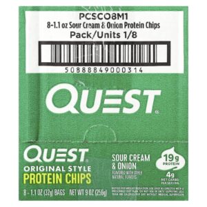 Quest Nutrition Batatas Fritas de Proteína Creme Azedo e Cebola 8 Sacos 32 g (11 oz) Cada – Quest Nutrition Nutrição Esportiva Barrinhas e snacks esportivos Snacks proteicos.