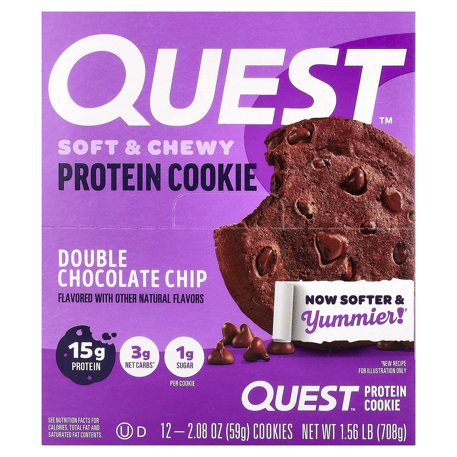 Quest Nutrition Cookie de Proteína Chocolate Duplo em Lascas 12 Cookies 59 g (208 oz) Cada – Quest Nutrition Nutrição Esportiva Barrinhas e snacks esportivos Snacks proteicos Cookies de Proteínas.