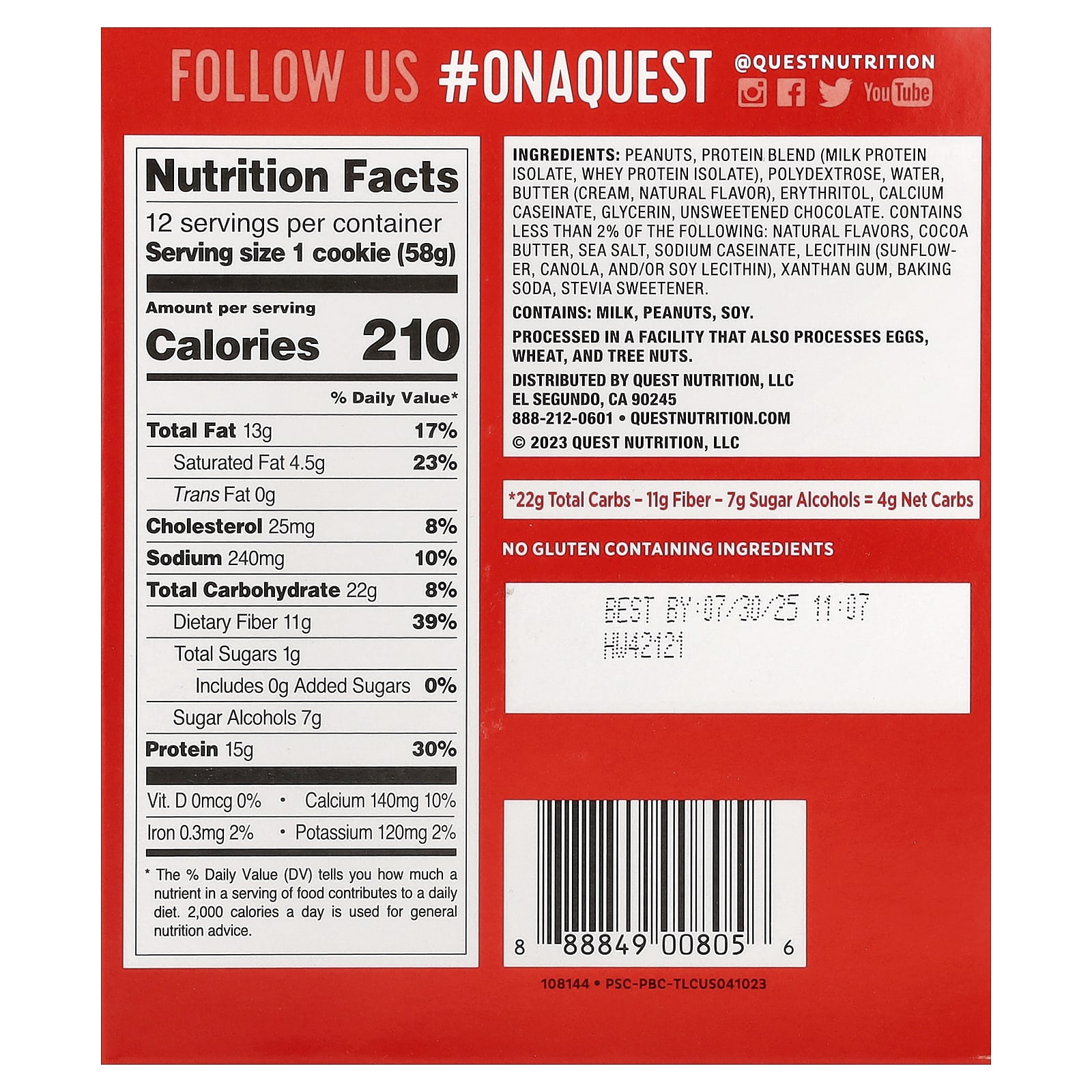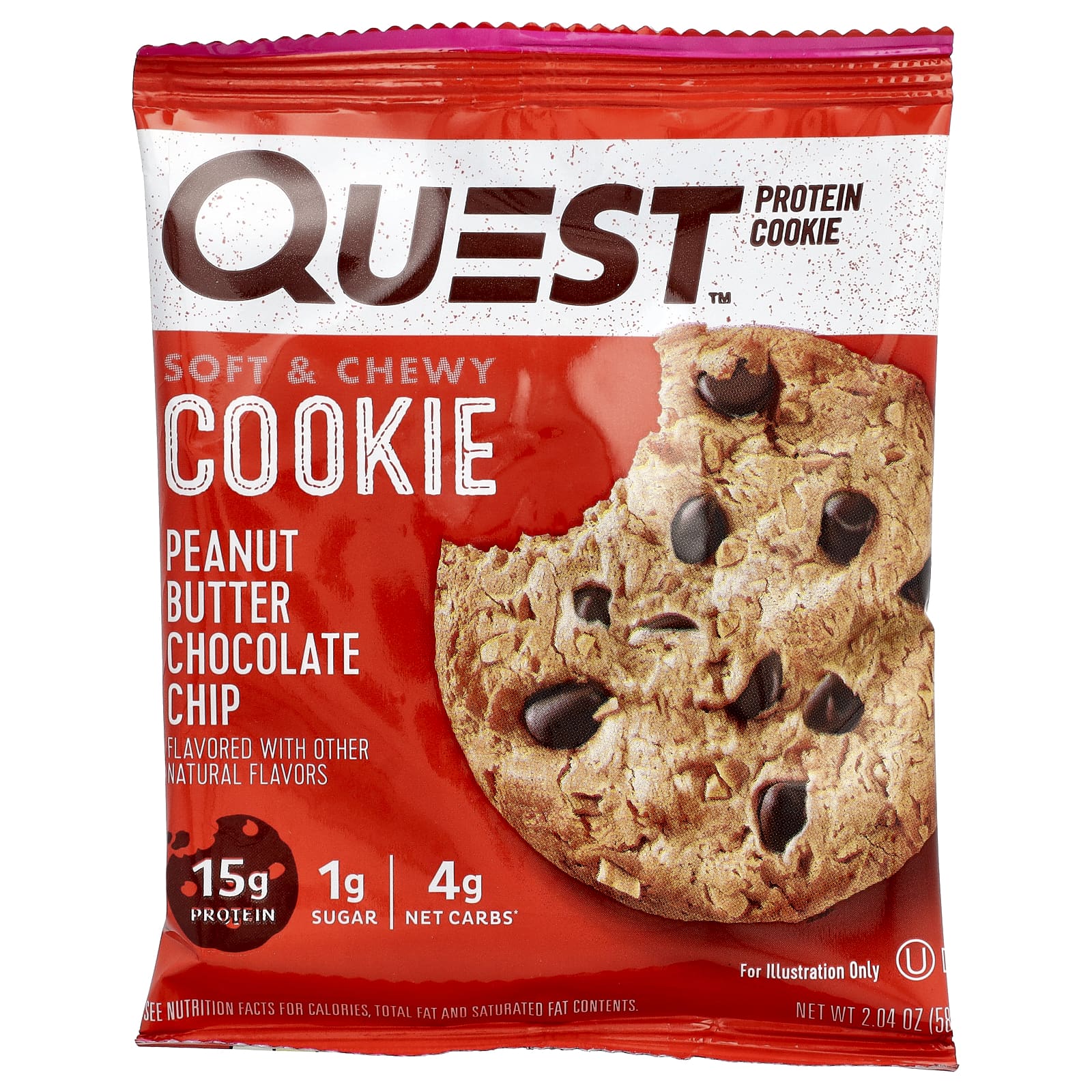 Quest Nutrition Cookie de Proteína Manteiga de Amendoim e Lascas de Chocolate 12 Cookies 58 g (204 oz) Cada – Quest Nutrition Nutrição Esportiva Barrinhas e snacks esportivos Snacks proteicos Cookies de Proteínas.