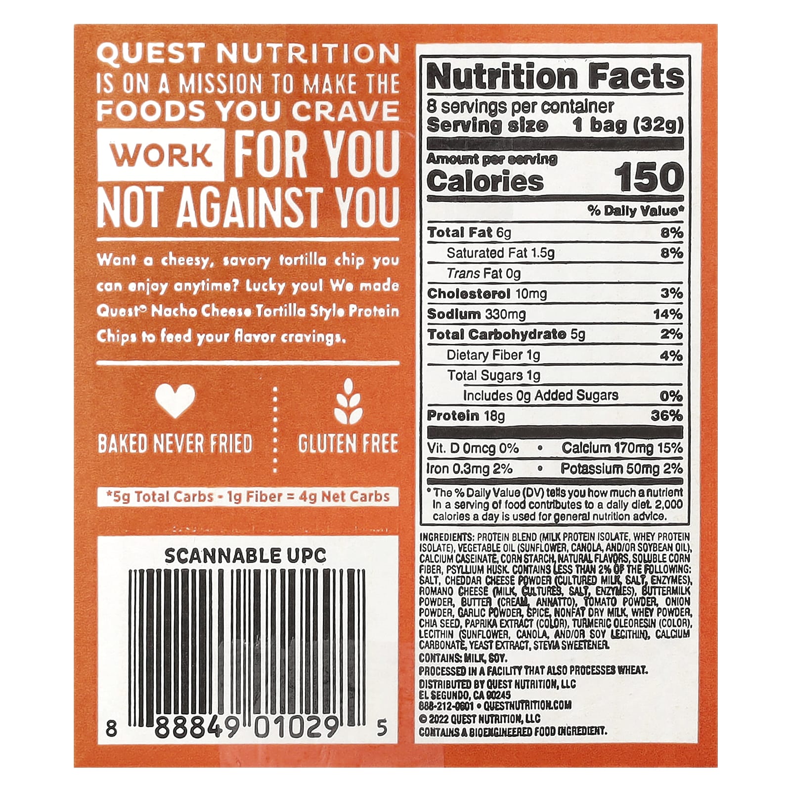 Quest Nutrition Lascas de Proteína Estilo Tortilha Queijo Nacho 8 Sacos 32 g (11 oz) Cada