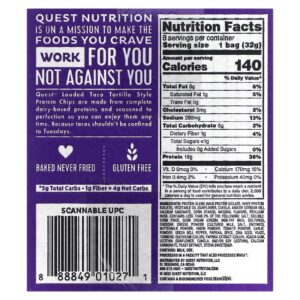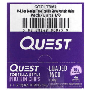 Quest Nutrition Lascas de Proteína Estilo Tortilha Taco Carregado 8 Sacos 32 g (11 oz) Cada – Quest Nutrition Nutrição Esportiva Barrinhas e snacks esportivos Snacks proteicos Chips de Proteína.