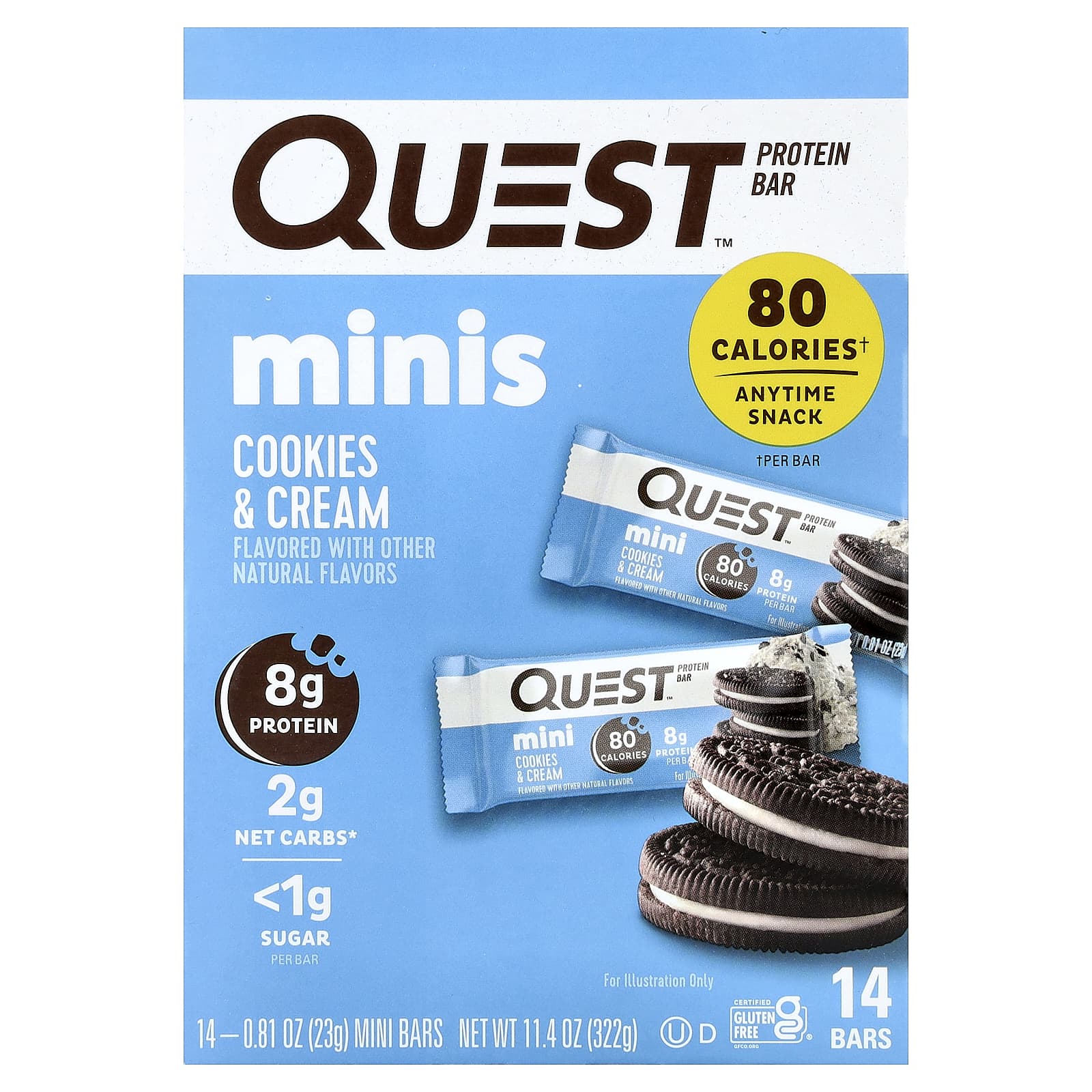 Quest Nutrition Minis Barra de Proteína Cookies e Creme 14 Barras 23 g (081 oz) Cada – Quest Nutrition Nutrição Esportiva Barrinhas e snacks esportivos Barras de Proteína Barras de Proteína de Whey.