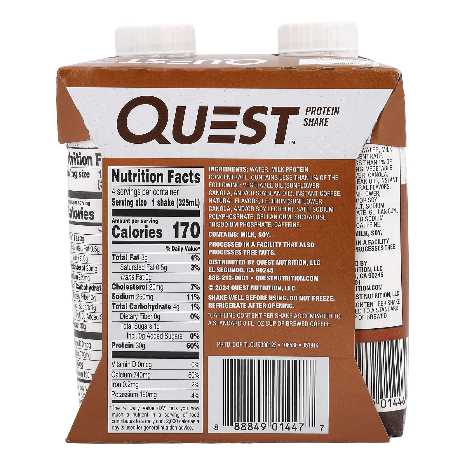 Quest Nutrition Shake Proteico Café 4 Shakes 325 ml (11 fl oz) Cada – Quest Nutrition Nutrição Esportiva Proteína Proteína pronta para beber Saúde Rico em proteínas.