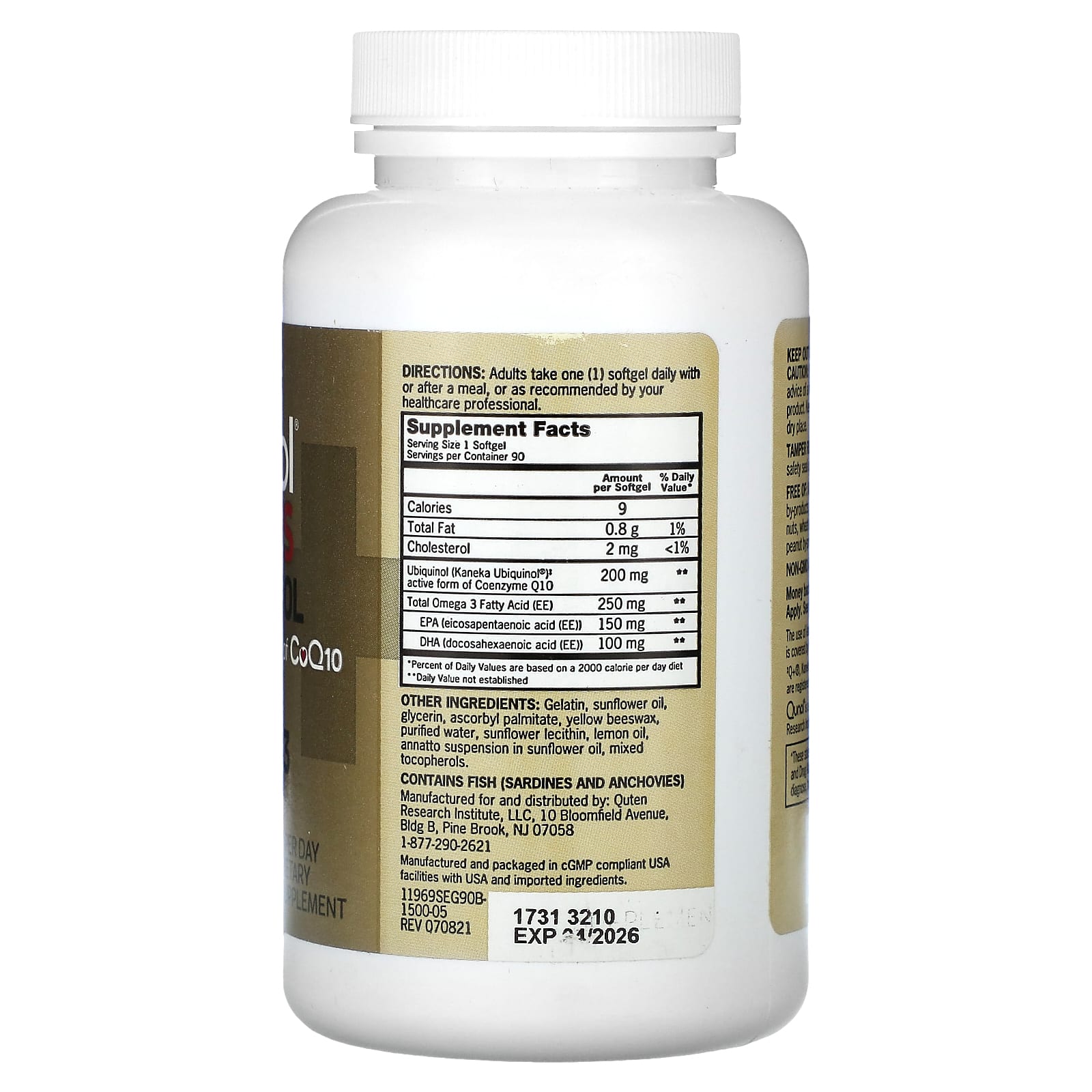 Qunol Mais Ubiquinol + Ômega-3 200 mg + 250 mg 90 Cápsulas Softgel – Qunol Suplementos Antioxidantes Coenzima Q10 (Ubiquinona) Ubiquinol.