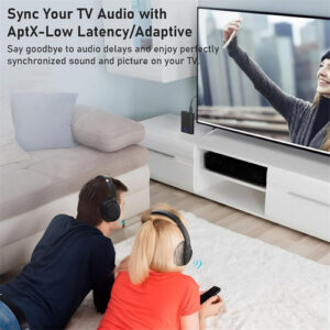 O modo codec de baixa latência do adaptador Bluetooth reduz a latência do áudio para menos de 40 milissegundos. Isso significa que sua imagem e som permanecem em perfeita sincronia ao usar nosso transmissor Bluetooth.