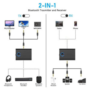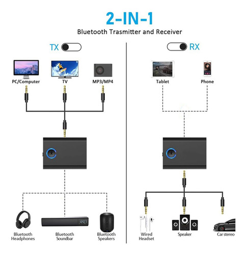Adaptador Bluetooth 5.3 para avião para 2 fones de ouvido sem fio, receptor transmissor Bluetooth de bordo com conector de 3,5 mm para TV Transceptor de áudio Bluetooth 5.3 2 em 1: o transmissor Bluetooth do modo TX ajuda você a transmitir áudio de dispositivos como computadores e dispositivos de entretenimento de avião para fones de ouvido, fones de ouvido ou alto-falantes Bluetooth. Você pode usar um cabo de 3,5 mm.