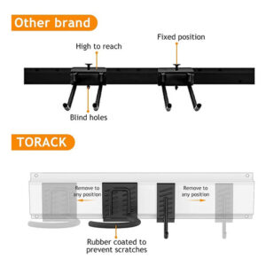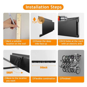 SOLUÇÕES PERFEITAS DE ARMAZENAMENTO DE BICICLETAS – Belo design de intertravamento de trilhos, combina perfeitamente os trilhos. 4 trilhos e 11 ganchos podem ser separados ou intertravados para exibir ou pendurar sua bicicleta. O design de gancho de pressão do TORACK facilita o encaixe no trilho, para facilitar o ajuste do espaçamento do gancho. TRILHOS
