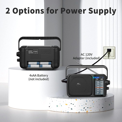 – Produto: Radio AM/FM YOWGULF Analogica, Batería o Adaptador, Negro