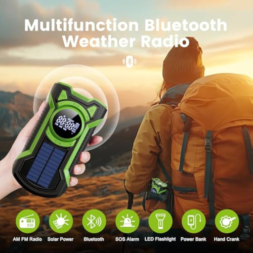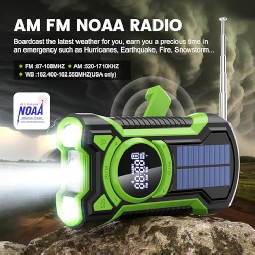 Rádio solar de emergência portátil com bateria recarregável de 5000 mAh, pequeno FM AM, rádio solar de emergência com alça, ideal para emergências, apagões e família