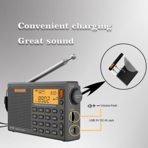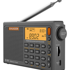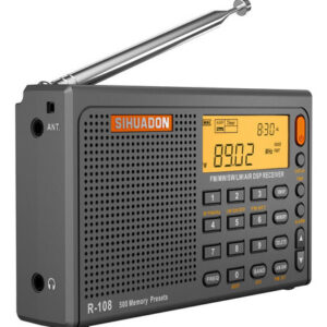 O rádio SIHUADON R-108 é compacto e leve. R-108 com componentes leves e resistentes e design exclusivo e requintado maximizam a portabilidade. para o desfile e para a vida doméstica. Materiais e componentes de alta qualidade fazem com que a saída de rádio R-108 tenha um bom desempenho em termos de qualidade de som. Ao mesmo tempo, o display LCD retroiluminado é muito conveniente para uso noturno. Os amantes da música podem tentar começar.