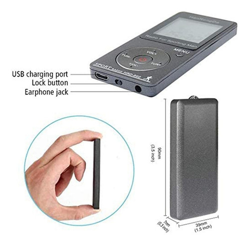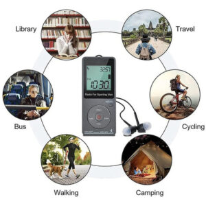 Características:-Rádio digital AM/FM portátil: Rádio de bolso portátil, com alta sensibilidade de recepção. Suporta rádio estéreo de 2 bandas AM/FM. Faixas de frequência FM: 60-108KHZ, faixas de frequência AM: 9KHZ: 522-1620KHZ /10KHZ:520-1710KHZ. Ele pode armazenar 70 estações de rádio (50 em FM e 20 em ondas de frequência média).-Rádio esportivo com pedômetro: este é um rádio esportivo com função de pedômetro integrada, que pode registrar seus passos, comprimento da passada, calorias queimadas pelo exercício e distância. Altamente portátil, colocá-lo no bolso não lhe trará nenhum fardo, é o melhor companheiro para a prática de esportes.-Bateria recarregável: esse rádio walkman tem uma bateria de lítio 400MAH integrada, que tem uma longa vida útil e não requer substituição frequente da bateria. Você pode avaliar se o nível de energia é suficiente pelo símbolo da bateria na tela LCD.-Rádio de bolso multifuncional: busca e armazenamento totalmente automáticos de estações de rádio/recarregável/contador de passos/contador de passos/registro de consumo de calorias/cálculo da distância percorrida/design de trava de chave para evitar operação incorreta/temporizador de sono e função de relógio. Você pode aproveitar o tempo do rádio antes de ir para a cama.-O melhor presente: esse minirrádio pessoal é fácil de carregar porque é leve o suficiente. É muito adequado para praticar esportes, viajar, caminhar, passear com o cachorro ou andar de bicicleta. Ele também pode ser usado como um presente perfeito para pais, filhos e amigos.Material: ABSCor: Cinza prateadoConteúdo da embalagem:1 * Rádio1 * bolsa de armazenamento1 cordão1 cabo de carregamento USB1 par de fones de ouvido (cor aleatória, não aceite a cor especificada) Caro compradorSe tiver alguma dúvida sobre o produto depois de receber a encomenda, contacte-nos atempadamente (como enviar uma mensagem: vá aos detalhes da encomenda – clique na minha conta – clique na compra – pode enviar uma mensagem)Por favor, não reclame diretamente sem procurar a nossa ajuda, as reclamações não ajudam a resolver o problema, por favor contacte-nos a tempo, iremos fornecer-lhe uma solução mais satisfatória do que as reclamações;Devido à diferença de luz e ecrã, a cor do artigo na imagem pode ser ligeiramente diferente da cor realDesejamos-lhe boas compras!
