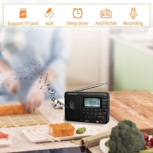 1.FM/AM/SW TODA A BANDA: Rádio portátil com todas as funções necessárias: banda FM/AM/SW; se você estiver procurando por um rádio alimentado por bateria com gravador de voz. Som baixo, bom presente para idosos.