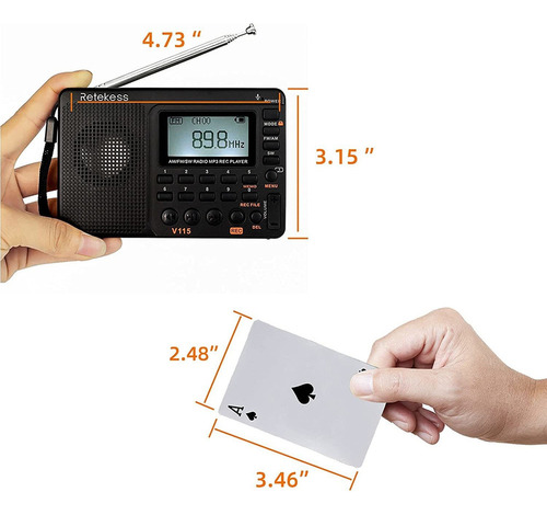 Portátil: o rádio portátil V115 mede apenas 4,7 x 3,1 x 0,8 polegadas; o que é muito adequado para bolsos de camisa; é incrível encontrar tanta funcionalidade em um rádio tão compacto, perfeito para viajar. 5.