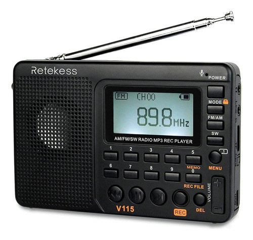 Rádio portátil Retekess V115 com todos os recursos que você precisa: banda FM/AM/SW, e também possui 3 modos de gravação, reprodutor de música com som baixo. Você pode gravar suas músicas ou programas de entrevistas favoritos no rádio e gravar sons externos com o microfone embutido. Portanto, este rádio multifuncional não só permite que você aproveite o rádio, mas também oferece muita diversão.