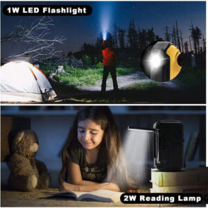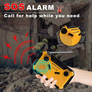 Lanterna Super Brilhante e Alarme SOS Este rádio vem com uma lanterna de 1W e uma luz de leitura de 2W. Ilumine sua noite quando sair ou em casa quando estiver escuro, e também pode ser usado como luz de leitura em casa. Quando você encontra um dilema ou perigo ou está em um local escuro, a função de alarme SOS pode ativar a sirene em situações de emergência para evitar o perigo. É o melhor equipamento de sobrevivência.