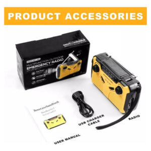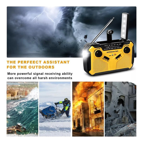 Rádio multifuncional práticoEste rádio solar externo não pode ser usado apenas para ouvir rádio e clima, mas também como um banco de potência de 2500mAh, lanterna e alarme SOS. É perfeito para acampar e viajar e é um companheiro perfeito para emergências, caminhadas, camping e ao ar livre. Conteúdo da Embalagem: 1 x Rádio de Emergência, 1 x Cabo USB, 1 x Cordão e 1 x Manual de Instruções.