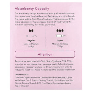 As avaliações de absorção são padrão entre todos os fabricantes. Assim, você pode comparar a absorção dos absorventes internos da Rael com outras marcas. O risco de contrair a Síndrome do Choque Tóxico (SCT) aumenta com o aumento do nível de absorção. Você pode reduzir o risco de SCT usando a absorção mínima que atende às suas necessidades.