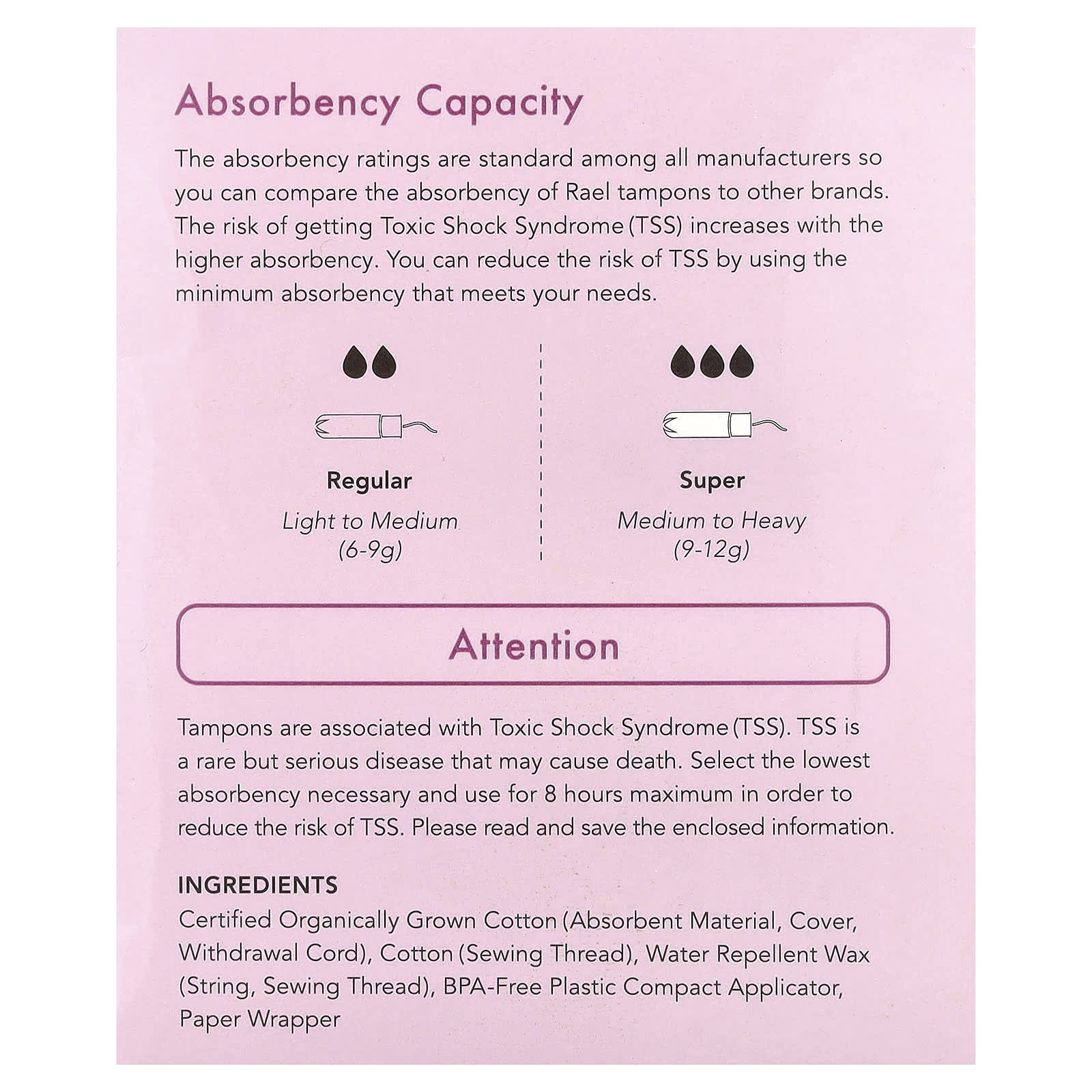 Rael Absorventes de Algodão Orgânico Super Sem Perfume 18 Unidades – Rael Cuidados Pessoais Cuidados Íntimos Higiene Feminina Absorventes internos.