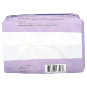 Lençol superior de algodão orgânico certificado, núcleo de polpa de madeira natural sem cloro elementar com polímeros superabsorventes, polietileno, polipropileno, elásticos, suporte à prova d’água.