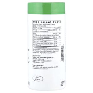 Celulose (origem vegetal), goma de celulose, ácido esteárico vegetal, estearato de magnésio vegetal, sílica, revestimento orgânico à base de plantas.