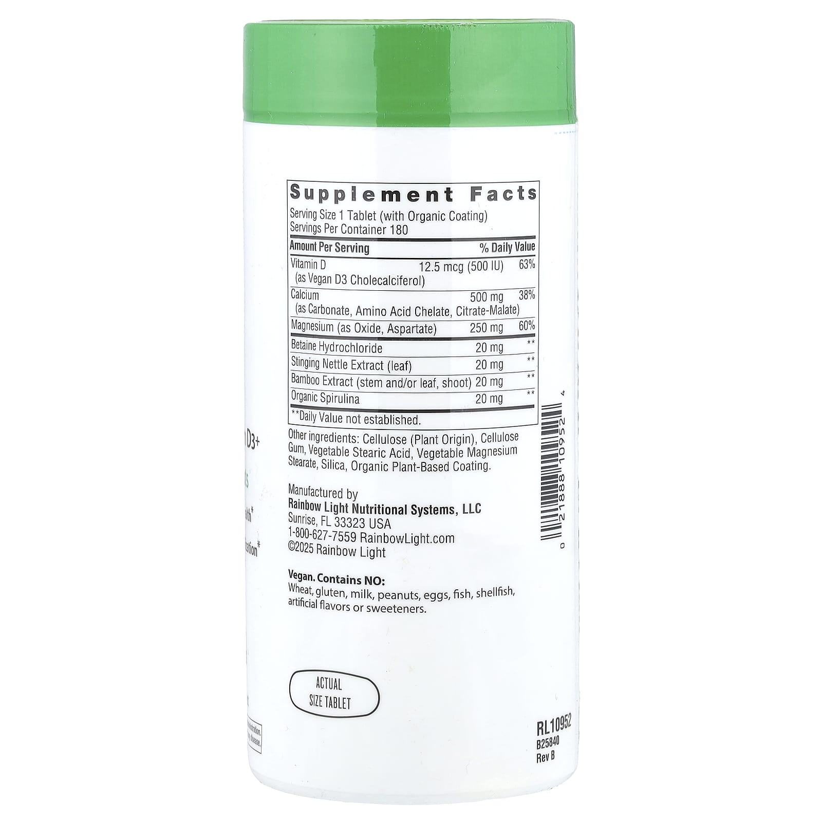 Rainbow Light Cálcio com Magnésio e Vegan D3+ 180 Comprimidos – Rainbow Light Suplementos Minerais Cálcio.