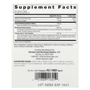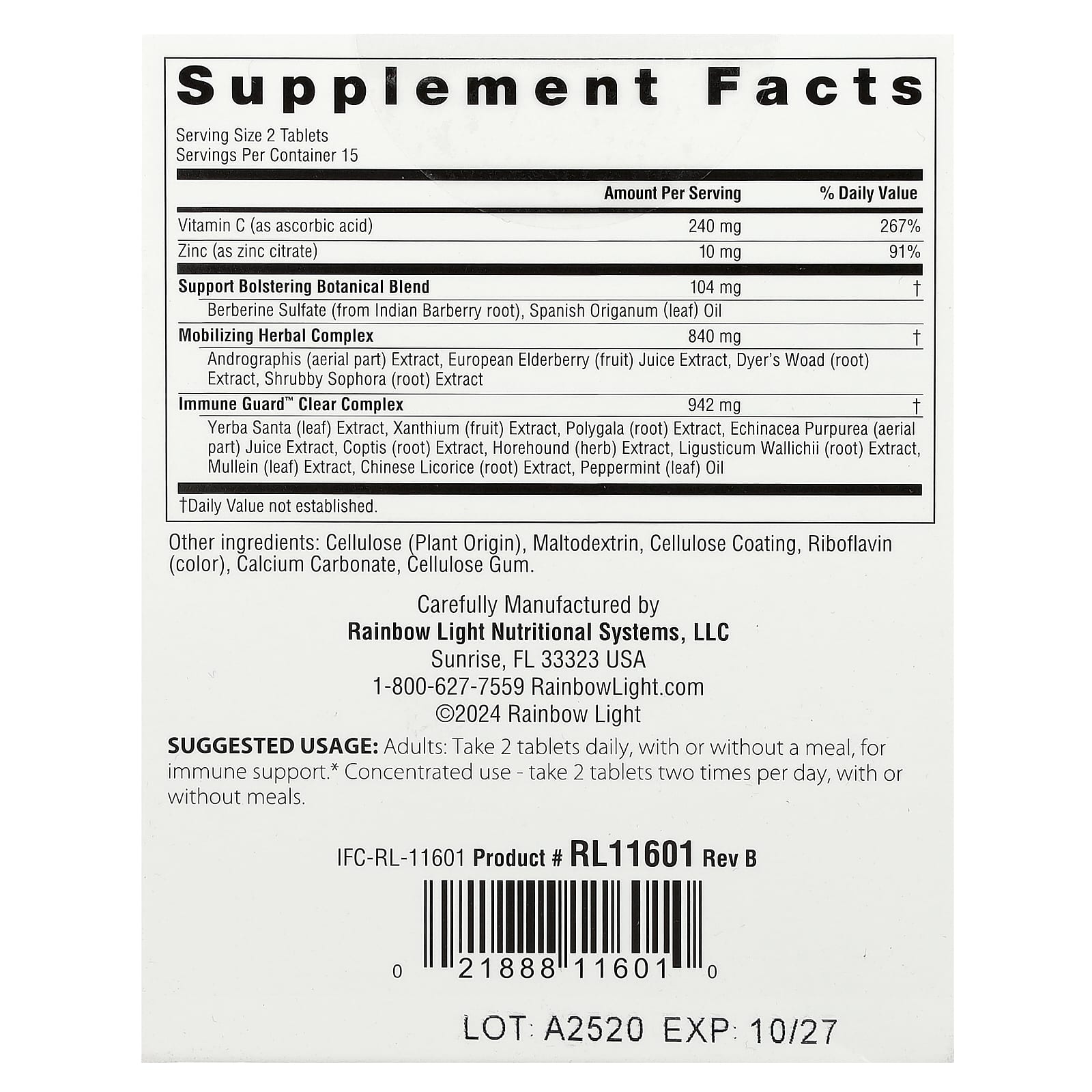 Rainbow Light Contraataque® 30 Comprimidos – Rainbow Light Suplementos Ervas Fórmulas de Ervas Saúde Auxílio à Imunidade Immune Formulas.