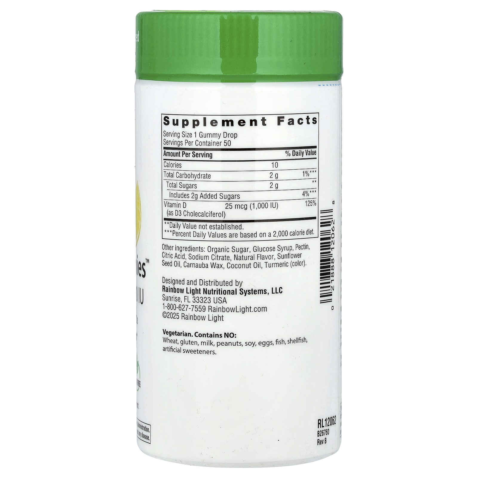 Rainbow Light Sunny Gummies™ Vitamina D3 Delicioso Limão 25 mcg (1.000 UI) 50 Gomas