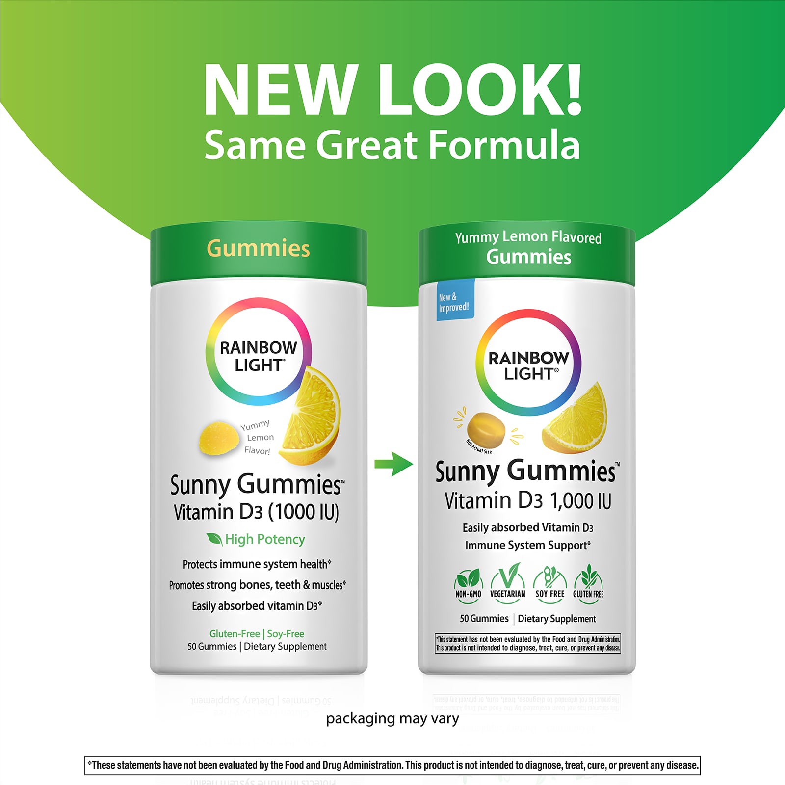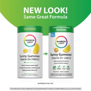 Rainbow Light Sunny Gummies™ Vitamina D3 Delicioso Limão 25 mcg (1.000 UI) 50 Gomas – Rainbow Light Suplementos Vitaminas Vitamina D.