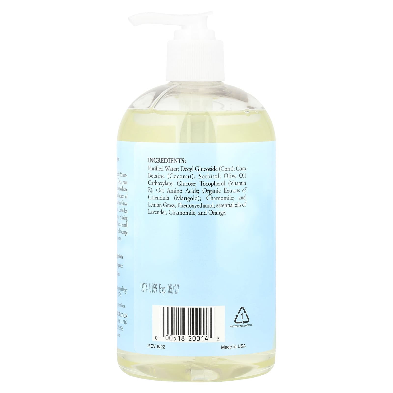 Água purificada; decil glucósido (milho); coco betaína (coco); sorbitol; carboxilato de azeite; glicose; tocoferol (vitamina E); palmitato de retinilo (vitamina A); aminoácidos de aveia; extratos orgânicos de caldula (calêndula), camomila e gramado de limão; fenoxitol (chá verde); Óleos essenciais de lavanda, camomila e laranja; extracto de semente de toranja.