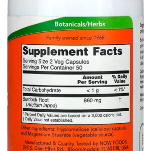 Raiz De Bardana 430mg 100 Cáps Importado 2un Now Foods