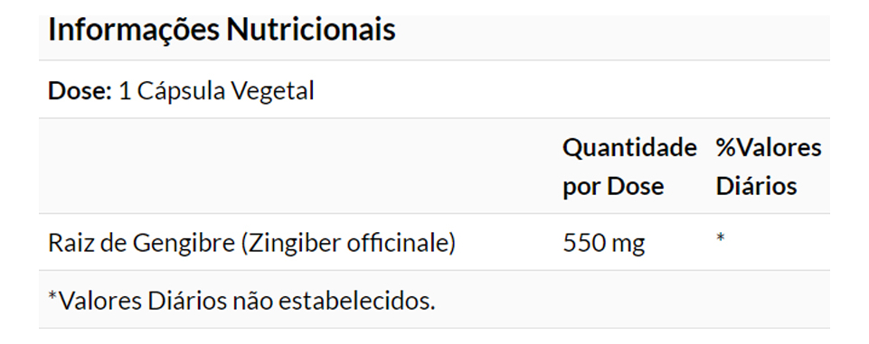 5. Elementos da Composição: Cada cápsula contém 550mg de raiz de gengibre de alta qualidade, fornecendo um suporte natural para uma variedade de funções corporais. Validade longa