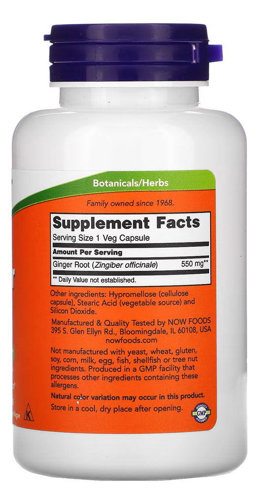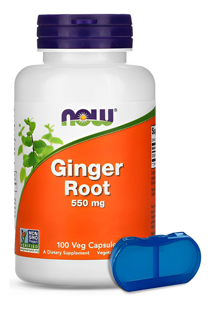 Raiz de Gengibre 550mg Now Foods 100 Caps Importado + Porta Cápsulas