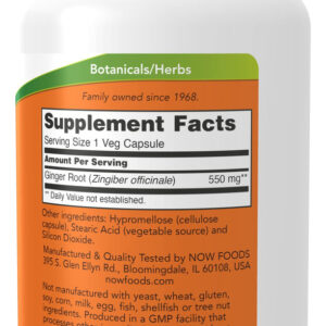 Raiz de gengibre, 550 mg, 100 cápsulas, sabor sem sabor, da Now Foods, é o suplemento perfeito para quem busca melhorar seu bem-estar e saúde de forma natural. Com sua fórmula de raiz de gengibre, este produto da renomada marca NOW Foods oferece uma ampla gama de benefícios para o corpo e a mente.