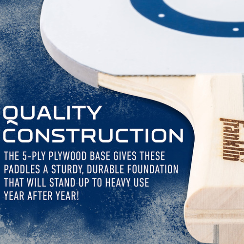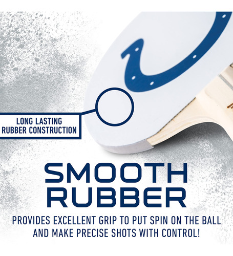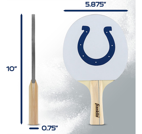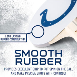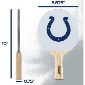 Franklin Sports Indianapolis Colts Table Tennis Paddle – NFL Team Table Tennis Paddles – Official Team Logos and Colors – Fun NFL Game Room Accessories – INDIANAPOLIS COLTS PADDLE: These officially licensed table tennis paddles come with authentic team logos and colors so you can show your team pride with authority – QUALITY CONSTRUCTION: The 5-ply plywood base gives these paddles a sturdy, durable foundation that will stand up to heavy use year after year – RUBBER FACING: The smooth rubber facing provides excellent grip to put spin on the ball and make precise shots in-game – COMFORTABLE DESIGN: The laminated wood handle is tapered to fit comfortably in your hand, so you dont have to readjust your grip during the game – PERFECT FOR ANY FAN: These paddles are the perfect addition to any game room, man cave, or tailgate to show your team pride and bring some football fun to table tennis