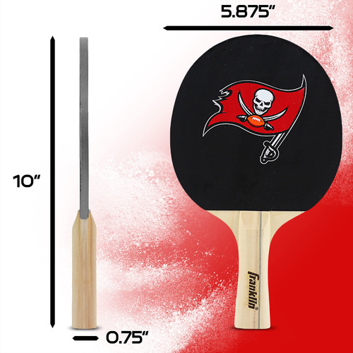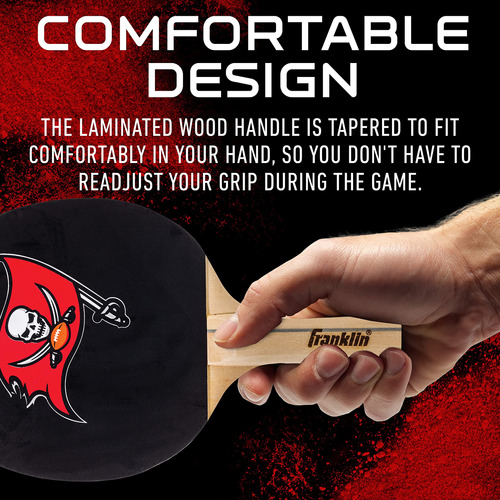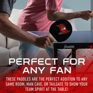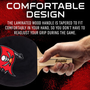 Franklin Sports Tampa Bay Buccaneers Table Tennis Paddle – NFL Team Table Tennis Paddles – Official Team Logos and Colors – Fun NFL Game Room Accessories – TAMPA BAY BUCCANEERS PADDLE: These officially licensed table tennis paddles come with authentic team logos and colors so you can show your team pride with authority – QUALITY CONSTRUCTION: The 5-ply plywood base gives these paddles a sturdy, durable foundation that will stand up to heavy use year after year – RUBBER FACING: The smooth rubber facing provides excellent grip to put spin on the ball and make precise shots in-game – COMFORTABLE DESIGN: The laminated wood handle is tapered to fit comfortably in your hand, so you dont have to readjust your grip during the game – PERFECT FOR ANY FAN: These paddles are the perfect addition to any game room, man cave, or tailgate to show your team pride and bring some football fun to table tennis