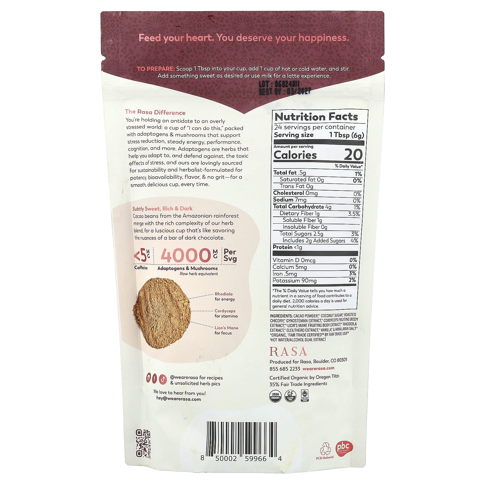 Rasa Alternativa para Café Adaptogênico e Cogumelo Instantâneo Cacau Noir 144 g (5 oz) – Rasa Alimentos Chás e bebidas Coffee Café de Ervas e Cogumelos.