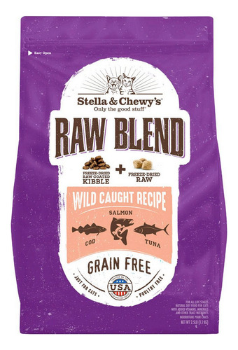 Raw Blend Premium Kibble Cat Food, Sem Grãos, Proteína Rich