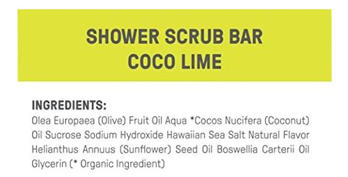 RAW ELEMENTS SHOWER SCRUB BAR EM NOSSO PERFIL COCO LIME É ÚNICO. NOSSO PERFUME FOI ESCOLHIDO PELA SURPREENDENTE RESPOSTA QUE RECEBEMOS DE NOSSO FEEDBACK SOBRE NOSSA LOÇÃO DIÁRIA COCO LIME. COM 3,5 OZ, É MENOR EM TAMANHO, MAS CONTÉM UM PONTO DE ÓLEOS ORGÂNICOS CERTIFICADOS, INCLUINDO COCO PARA ESFOLIAR, HIDRATAR E SEU CORPO. É UM ÓTIMO BAR PARA USAR DEPOIS DE UM DIA QUENTE DE VERÃO NO CAMPING OU PARA RELAXAR DEPOIS DE UM DIA DURO DE TRABALHO. NOSSOS SABÕES SÃO EMBALADOS EM MATERIAIS DE RESÍDUOS ZERO ENQUANTO CONTINUAMOS A CONDUZIR NOSSO PROGRAMA DE SUSTENTABILIDADE. Color: Marca: RAW ELEMENTS Dimensiones: 0.08 x 0.05 x 0.03mts. Peso del Producto: 0.11 Kilogramos. Peso de Envio: 0.11 Kilogramos. Modelo: B0B3GTSMVK Garantia do vendedor: 30 dias