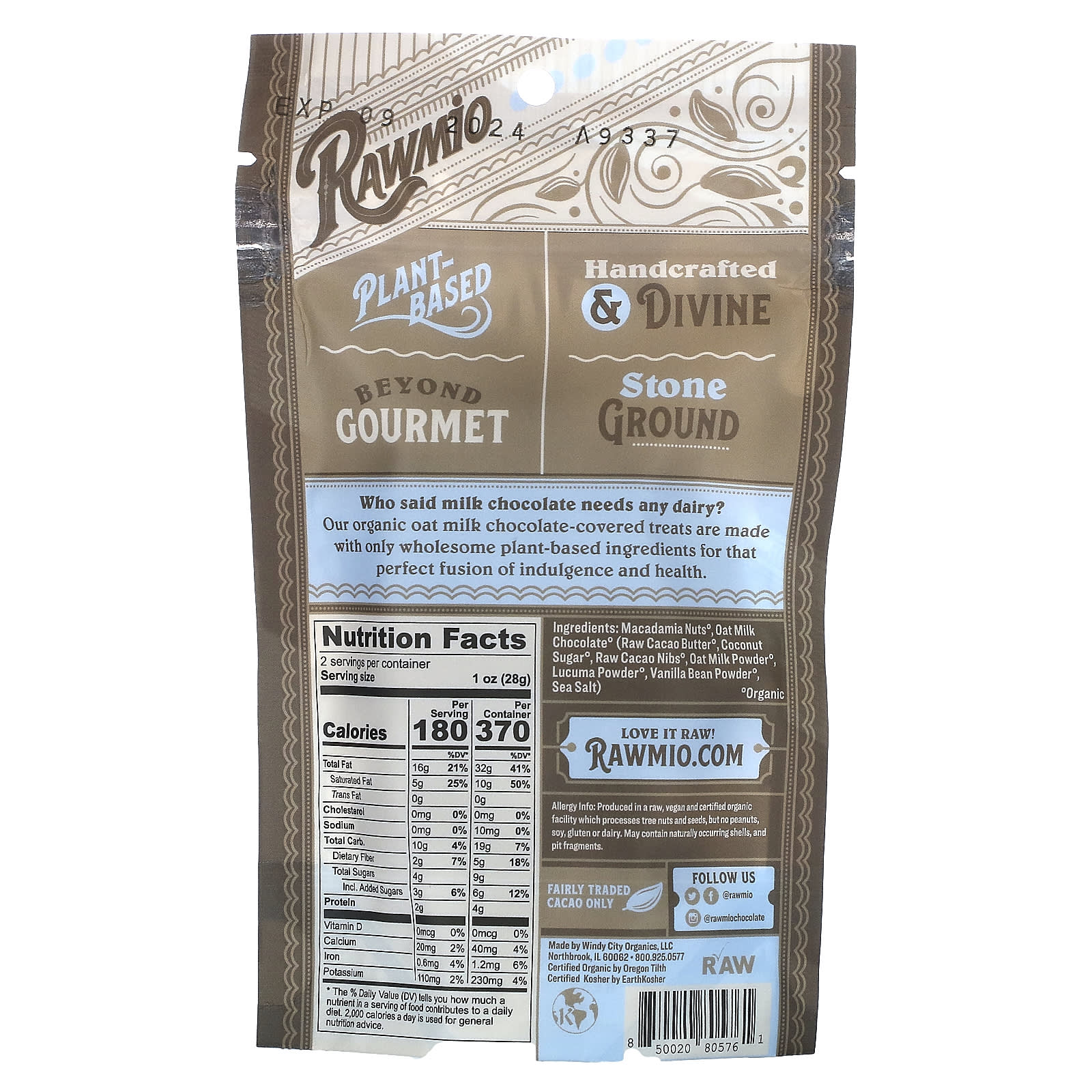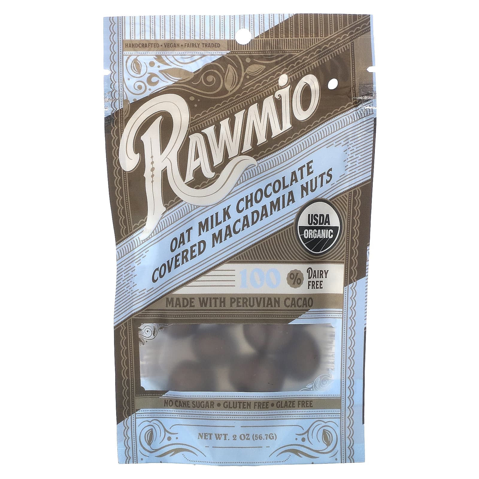 Rawmio Nozes de Macadâmia Cobertas com Chocolate ao Leite de Aveia 567 g (2 oz) – Rawmio Alimentos Chocolate e doces Chocolate Chocolate ao leite.