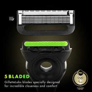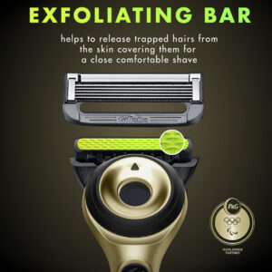 Máquina de barbear GilletteLabs com barra esfoliante para homens, Champion Gold Edition — 1 alça, 1 recarga de lâmina de barbear, inclui suporte magnético premium — A melhor experiência de barbear: a GilletteLabs com barra esfoliante da Gillette é a primeira máquina de barbear do mundo com tecnologia esfoliante embutida na alça — para a melhor experiência de barbear da Gillette — Barra esfoliante embutida: embutida na alça, a barra esfoliante libera os pelos presos para um barbear suave — CONFORTO E PROXIMIDADE INCRÍVEIS: esta navalha masculina apresenta cinco lâminas afiadas da Gillette, especialmente projetadas para proporcionar conforto e proximidade – Design adaptável: o FlexDisc 2D contorna seu rosto para garantir conforto e contato a cada golpe – DURABILIDADE DE LONGA DURAÇÃO: o cabo da navalha e a barra esfoliante contam com garantia vitalícia