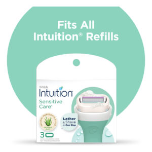 Lâminas de barbear Schick Intuition Sleek para mulheres com pele sensível | Recarga de 1 lâmina de barbear e 3 lâminas de barbear com babosa orgânica — Não precisa de creme de barbear ou gel de barbear Ensaboe e barbeie-se em uma única etapa com a navalha Schick Intuition Sensitive Care Sleek Handle — Alça de barbear elegante feita com uma alça de design fino para uma pegada confortável e controle preciso – Barra hidratante com babosa embutida com babosa orgânica ajuda a suavizar a pele enquanto você se barbeia – TESTADA POR DERMATOLOGISTAS. A fórmula vegana e hipoalergênica é testada por dermatologistas, suave e ótima para pessoas sensíveis pele — Barbeie bem e macia 4 lâminas e cabeça giratória que abraça os contornos do corpo — Perfeita para quem se barbeia pela primeira vez. Minimiza cortes e cortes — Fácil armazenamento — Boné vertical para facilitar o armazenamento no chuveiro