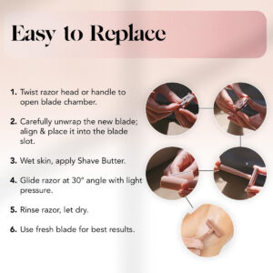 Diga adeus aos cortes, cortes e irritações e diga olá à pele sedosa e macia que está pronta para conquistar o dia. Nossas recargas de lâminas de barbear são feitas com precisão para uma experiência de barbear imbatível. Eles foram projetados para deslizar sem esforço pela pele, deixando-a lindamente macia sem problemas. Use-o com o barbeador de segurança Kitsch Perfect Glide junto com a manteiga de barbear sólida Kitsch para obter o melhor resultado. Mas não nos preocupamos apenas com função; também nos preocupamos com estilo! Cada conjunto inclui 10 lâminas de alta qualidade, garantindo que você tenha um suprimento constante de nitidez sempre que precisar. Chega de correr de última hora para a loja! Trocar as lâminas nunca foi tão fácil, graças ao nosso design fácil de usar. Mantenha seu aparelho de barbear funcionando da melhor maneira possível com substituições rápidas e sem complicações. Então, por que se contentar com menos quando você pode ter o melhor? Presenteie-se com o conjunto de 10 recargas Kitsch Razor Blade e experimente a alegria de um barbear perfeito, sempre. Sua pele agradecerá e você estará pronto para conquistar o mundo com confiança! É recomendável usar sempre uma lâmina nova para obter a máxima eficácia. – PRECISÃO E DURABILIDADE: desfrute de um barbear preciso e suave com nossas recargas de lâmina de barbear Kitsch. Feitas para um desempenho duradouro e um barbear preciso. – Combine com nosso barbeador de segurança: essas recargas de lâmina de barbear são projetadas para caber na navalha de segurança Kitsch Perfect Glide, garantindo uma substituição fácil para um barbear consistente. – Design adequado para a pele: feitas com materiais de alta qualidade, nossas máquinas de barbear para mulheres reduzem a irritação e proporcionam uma experiência de barbear confortável. Experimente com manteiga de barbear sólida Kitsch para obter o melhor barbear suave e uma pele macia. – Pacote econômico: economize mais com nosso conjunto de 10 peças de barbear femininas para recargas de barbear, oferecendo substitutos econômicos e convenientes para manter você abastecida e pronta para um barbear perfeito. – FÁCIL INSTALAÇÃO: trocar as lâminas é fácil com nosso design fácil de usar, permitindo que você substitua rapidamente as lâminas de barbear antigas por novos para uma experiência de barbear superior.