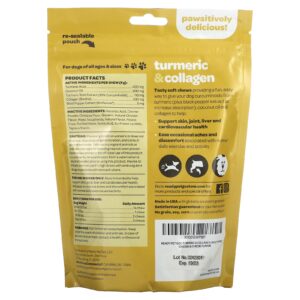 Cápsulas mastigáveis macias e saborosas que proporcionam uma maneira fácil e divertida de oferecer a seu cão curcuminoides de cúrcuma (além de extrato de pimenta-do-reino para aumentar a absorção), óleo de coco e colágeno para ajudar a: