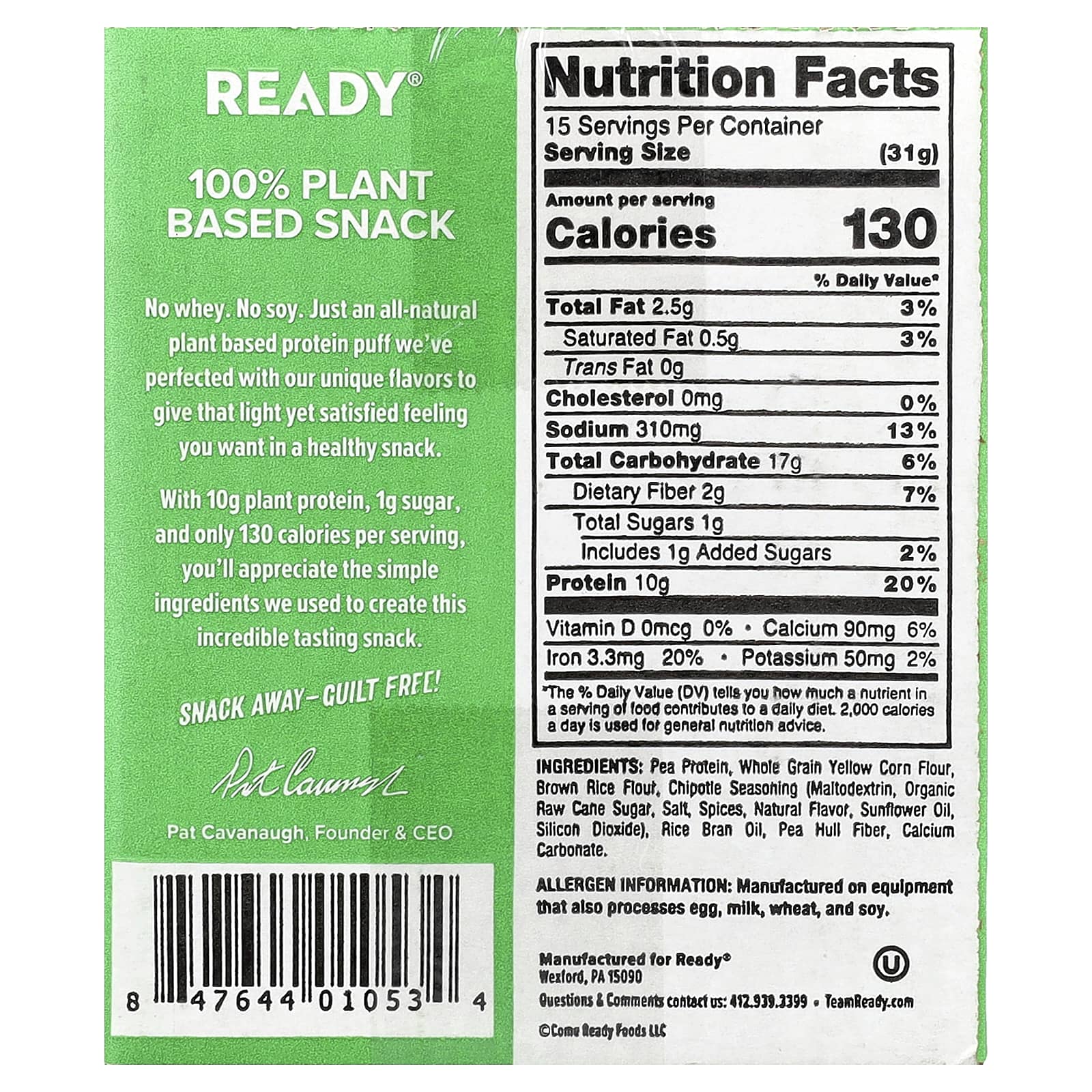 Ready Puffs de Proteína Chipotle 6 Sacos 78 g (275 oz) Cada