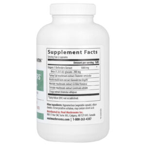 Real Mushrooms 5 Defenders® Extrato de Cogumelo em Pó 200 Cápsulas – Real Mushrooms Suplementos Cogumelos Misturas de Cogumelos Fórmulas de Cogumelos para o Sistema Imune.