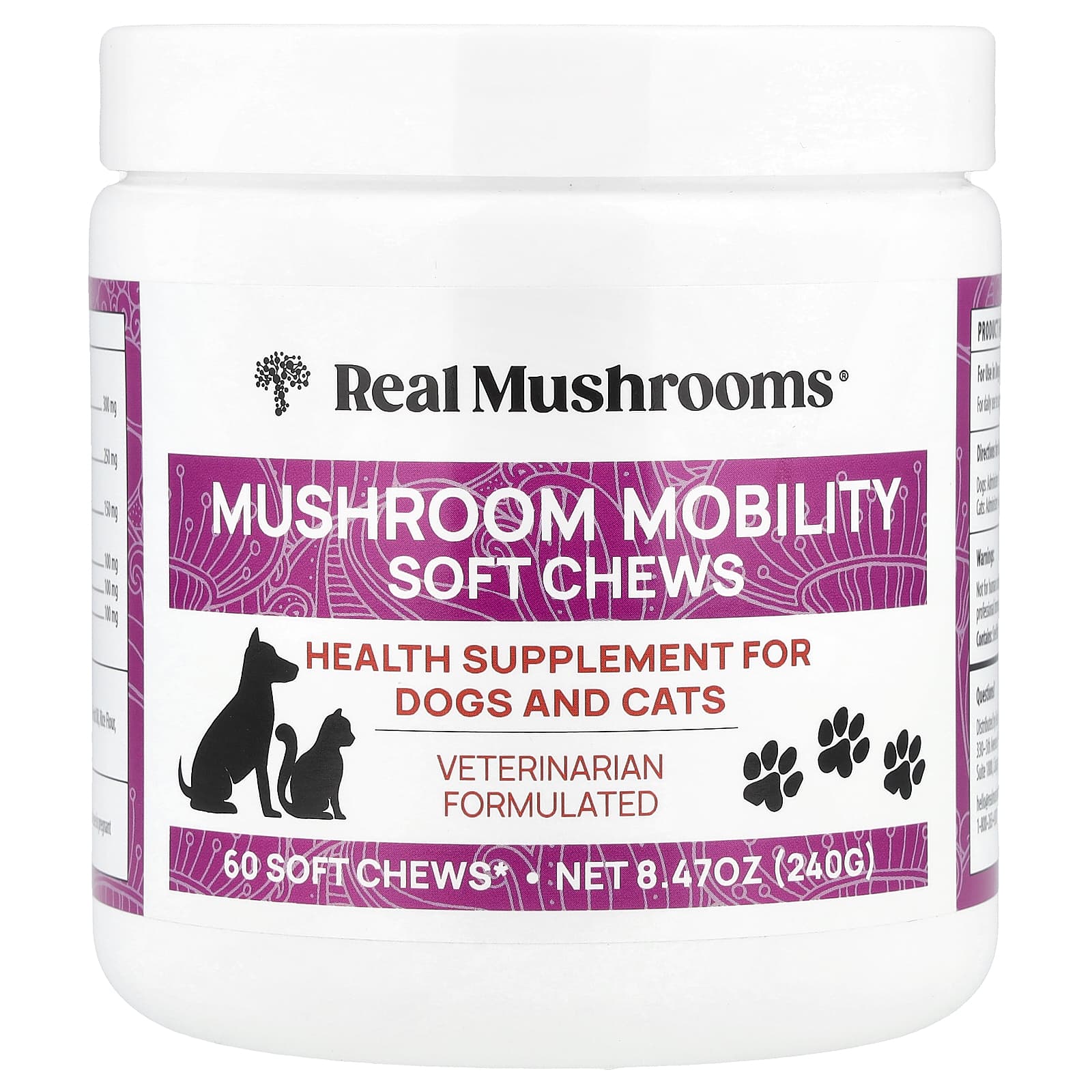 Real Mushrooms Cápsulas Mastigáveis Mushroom Mobility Para Cães e Gatos 60 Cápsulas Mastigáveis 240 g (847 oz) – Real Mushrooms Pets Saúde dos pets Suplementos para pets.