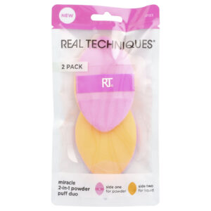 Real Techniques Miracle 2-in-1 Powder Puff Duo Pacote com 2 Unidades – Real Techniques Beleza Pincéis e Acessórios de Maquiagem Esponjas para maquiagem.