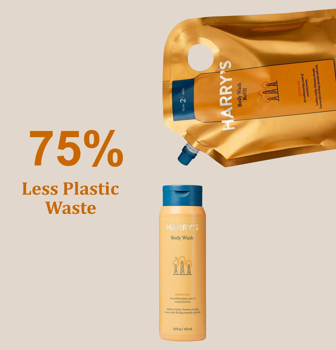 O refil de sabonete líquido Harry's pode ser usado para reabastecer seu frasco de 16 onças líquidas ou a bomba de lavagem corporal masculina Harry's de 24 onças fluidas. O sabonete corporal Harry's ensaboa abundantemente, limpa profundamente e deixa a pele macia após cada lavagem. Feito sem parabenos, sulfatos ou corantes, este limpador corporal elimina a sujeira e deixa a pele limpa e macia. Os sabonetes corporais costumam usar sulfatos para criar espuma, que pode ser agressiva para a pele. Escolhemos ingredientes suaves que limpam profundamente enquanto tratam sua pele com cuidado e ainda criam bastante espuma. O sabonete líquido masculino Harry's cria uma espuma rica sem sulfato com espuma cremosa e cheia de sabão, deixando a pele macia e condicionada. O aroma de sequoia é intenso e amadeirado, com notas de folhas perenes, sal marinho e sândalo, criando um aroma estimulante para começar (ou lavar) seu dia. Esse aroma forte evoca as florestas costeiras – tudo em seu chuveiro ou banheira. – Você receberá (1) refil de sabonete líquido masculino Harry's de 36 onças, perfume de sequoia – Use para reabastecer o frasco de 16 onças líquidas ou a bomba de lavagem corporal masculina Harry's de 24 onças – Redwood é um aroma estimulante de florestas costeiras – Folhas perenes, sal marinho, arenito Madeira — Produz uma espuma rica e limpa profundamente sem ser áspera — Feita sem sulfatos, parabenos ou corantes