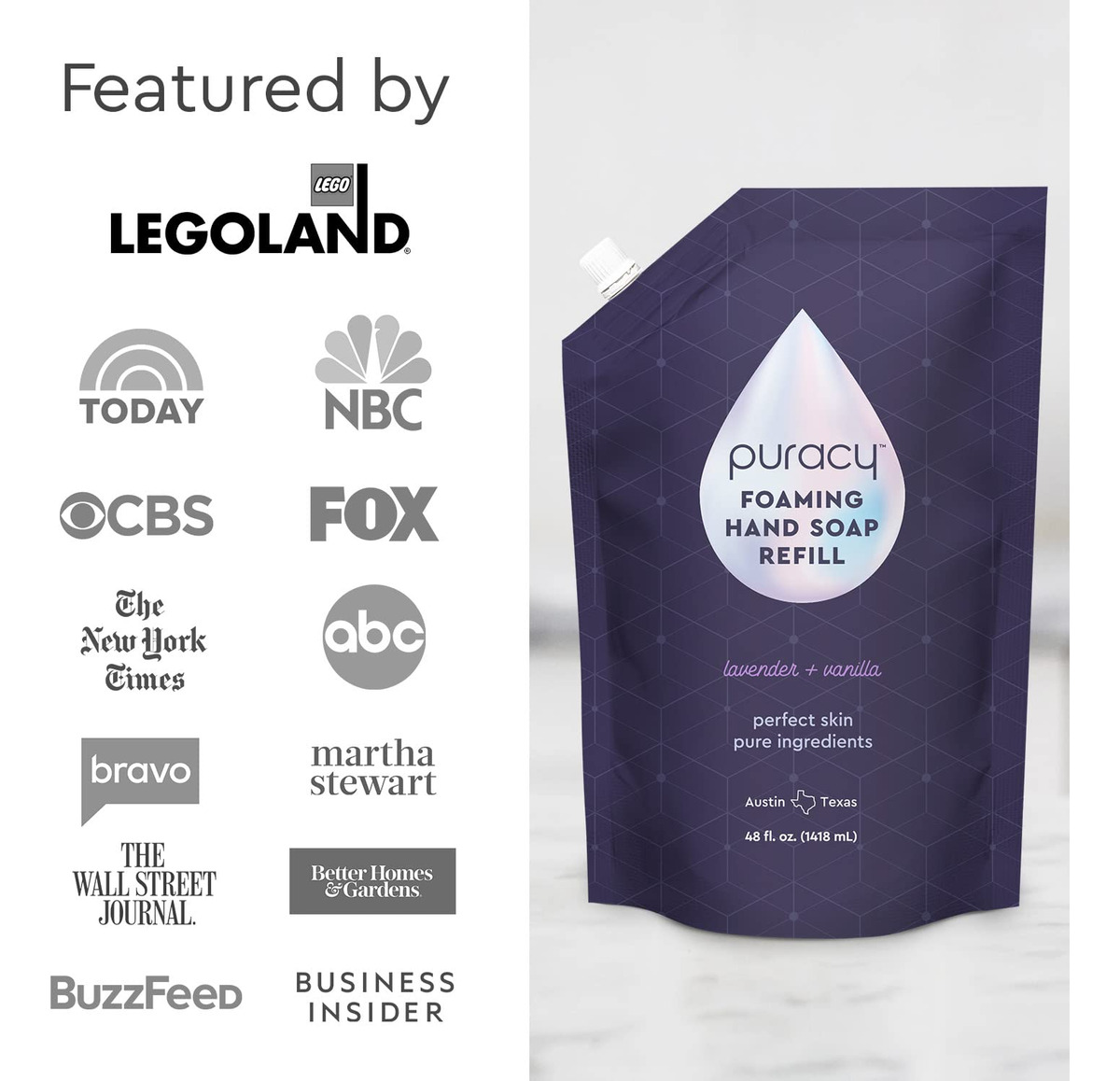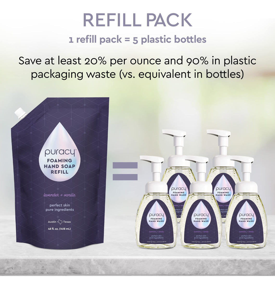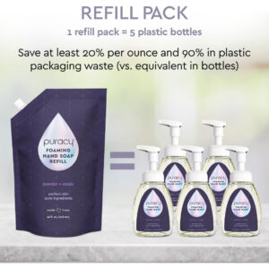 Para quem não quer perder tempo ensaboando, mas quer ir direto para a limpeza. Não tenho certeza de quem foi o gênio que disse: não seria mais fácil se o sabonete saísse já ensaboado, mas esse gênio preguiçoso tem um lugar em nossos corações. Nossos corações organicamente limpos. O sabonete natural espumante para mãos Puracy é um limpador suave e eficaz feito de plantas, minerais e água. É isso aí. Ao usar este sabonete natural para as mãos, você pode contar com zero resíduo e com um aroma natural e sutil, como seria de esperar da natureza. Resistente à gordura, gosma, sujeira e, claro, germes. Mas gentil com as mãos maiores e mais pequenas da sua casa. Mais de 500 mãos naturalmente limpas em cada garrafa. Tão bom que você vai querer lavar mais as mãos: os produtos de limpeza à base de coco criam montes de espuma rica e luxuosa, enquanto os hidratantes de nível clínico hidratam; enxágue 100% limpo. Somente para bombas que dispensam espuma (este é um líquido aquoso; veja nossa lista de sabonetes líquidos para lavar as mãos com gel líquido espesso); limpe 5.000 mãos por bolsa de recarga! – Para quem quer que o sabonete já esteja ensaboado – Tão bom que você vai querer lavar mais as mãos: limpadores à base de coco criam montes de espuma rica e luxuosa, enquanto os hidratantes de nível clínico hidratam; enxágue 100% limpo – Lavanda e baunilha: aromas suaves de lavanda francesa calmante com um tom quente e reconfortante de baunilha aumentarão sua experiência de lavar as mãos e desaparecerão rapidamente após o enxágue – Desenvolvido por Médicos e PhDs: enriquecidos com vitamina E e aloe vera para suavizar naturalmente a pele; sem disruptores do microbioma cutâneo: sem sulfatos, triclosan, SLS, SLES, petroquímicos, perfumes, subprodutos animais ou outros produtos químicos agressivos — Adore ou compraremos de volta: natural, hipoalergênico, vegano, sem glúten; certificado como livre de crueldade — nunca testado em animais; fabricado nos EUA